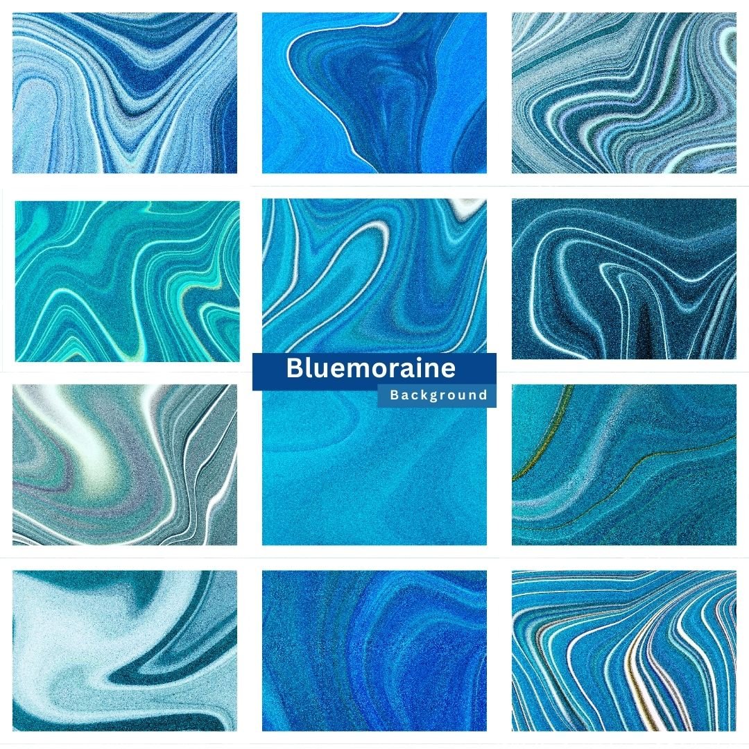 Bluemoraine — a soothing collection of 12 blue granite wave backgrounds with fluid swirls and mineral textures for modern, atmospheric design.