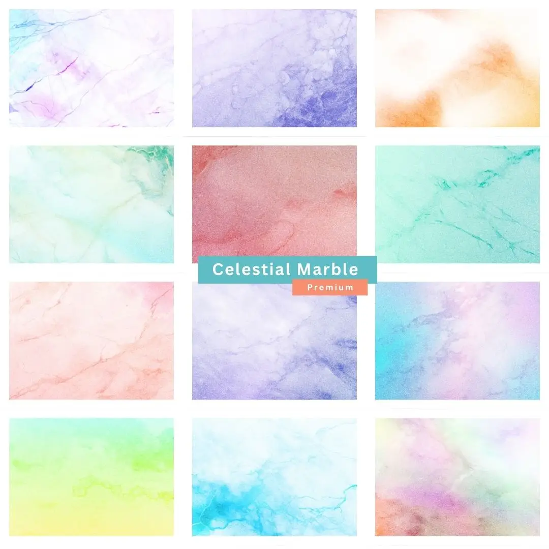 Step into a dreamlike universe with Celestial Marble, a radiant collection of 24 marble backgrounds infused with cosmic watercolor tones. Each design blends airy veining, soft gradients, and nebula-inspired color flows — from pastel blues and lilacs to warm sunrise tints and aurora-like spectrums. The result is a collection that feels weightless, artistic, and magically serene.