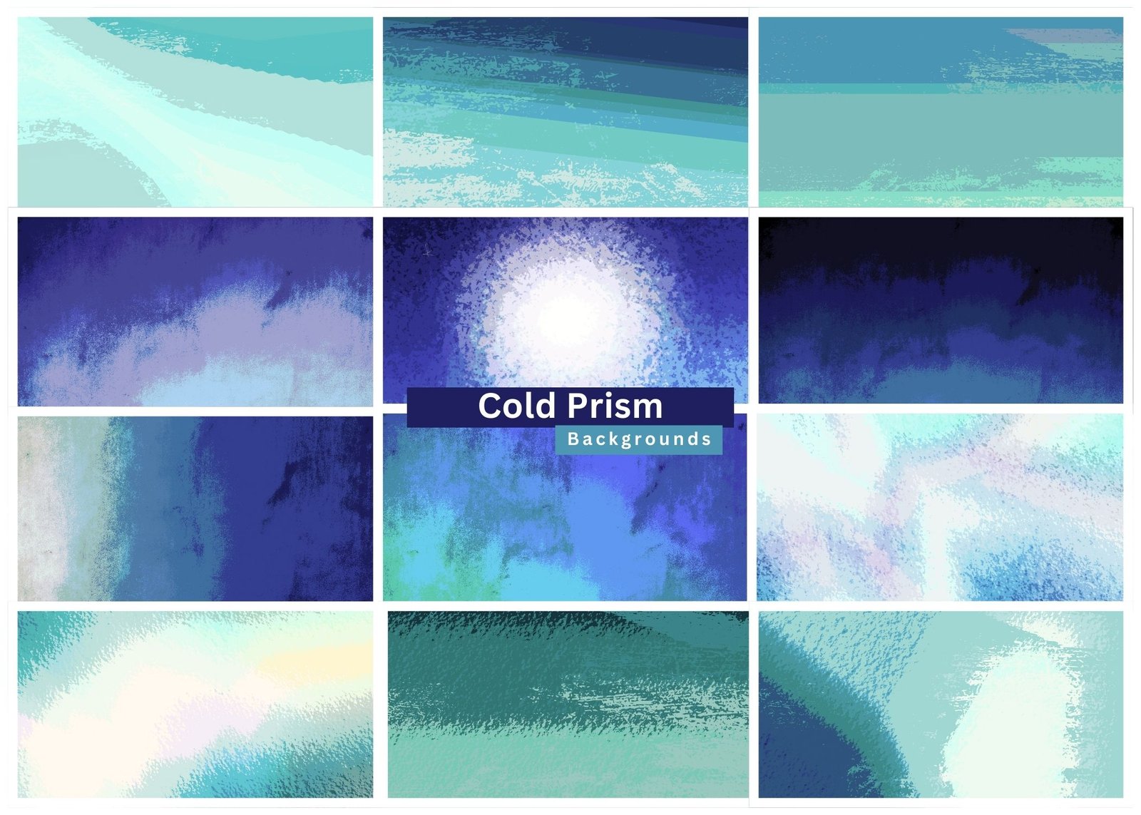 Immerse yourself in the crystalline calm of Cold Prism, a curated collection of 12 abstract backgrounds inspired by refracted light, icy atmospheres, and layered color transitions. Each design blends cool gradients, prismatic textures, and soft grain details, combining shades of icy blue, mint, teal, aqua, and deep indigo to create visuals that feel fresh, luminous, and quietly powerful.