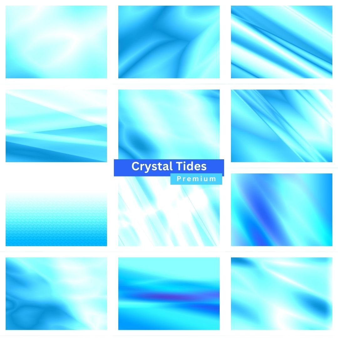 Immerse yourself in the luminous depth of Crystal Tides, a curated collection of 12 abstract backgrounds inspired by crystalline waters, fluid waves, and glowing cyan gradients. Each design reflects the beauty of liquid light—shifting flows, radiant textures, and layered transparency that evoke both tranquility and energy. Crystal Tides captures the essence of ocean clarity, bringing a refreshing yet modern touch to your creative projects.
