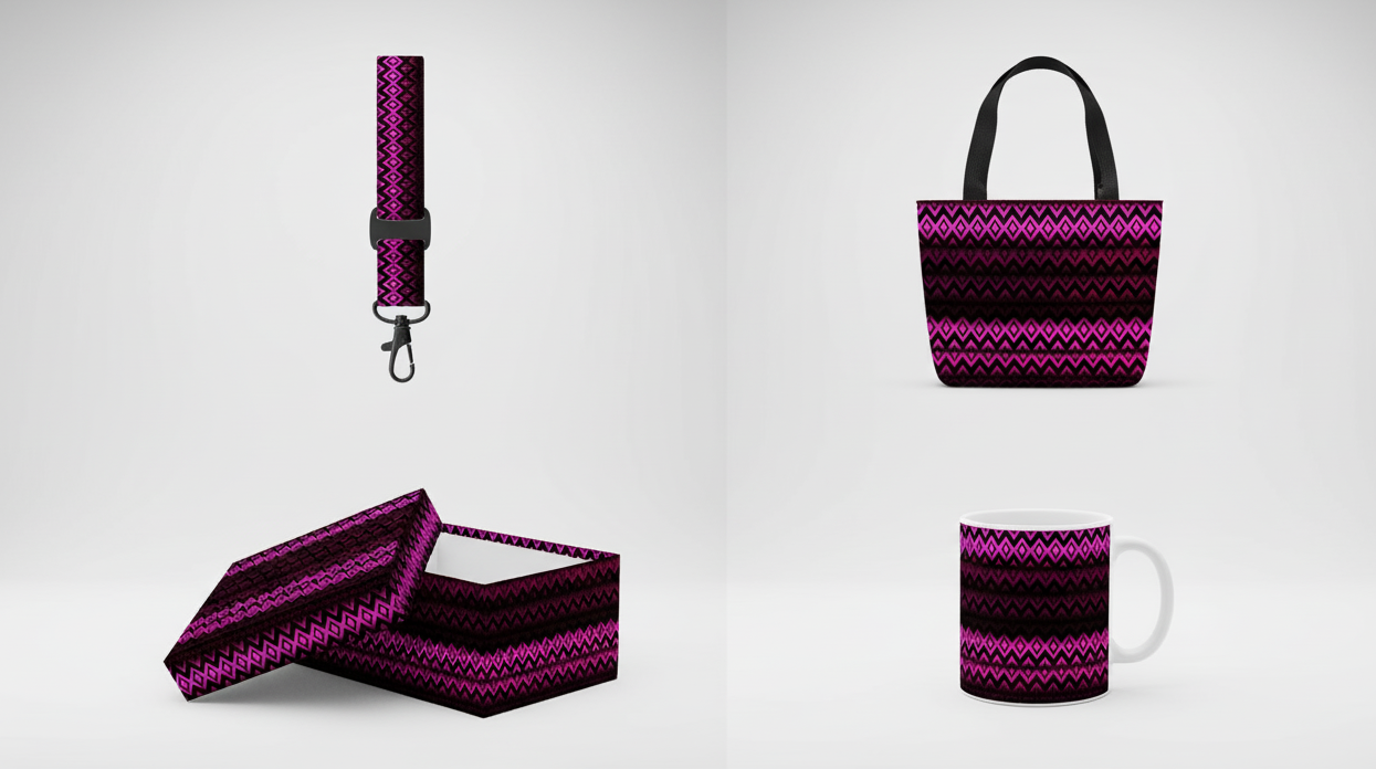 • Physical products for sale (apparel, accessories, stationery, home décor, packaging, etc.)