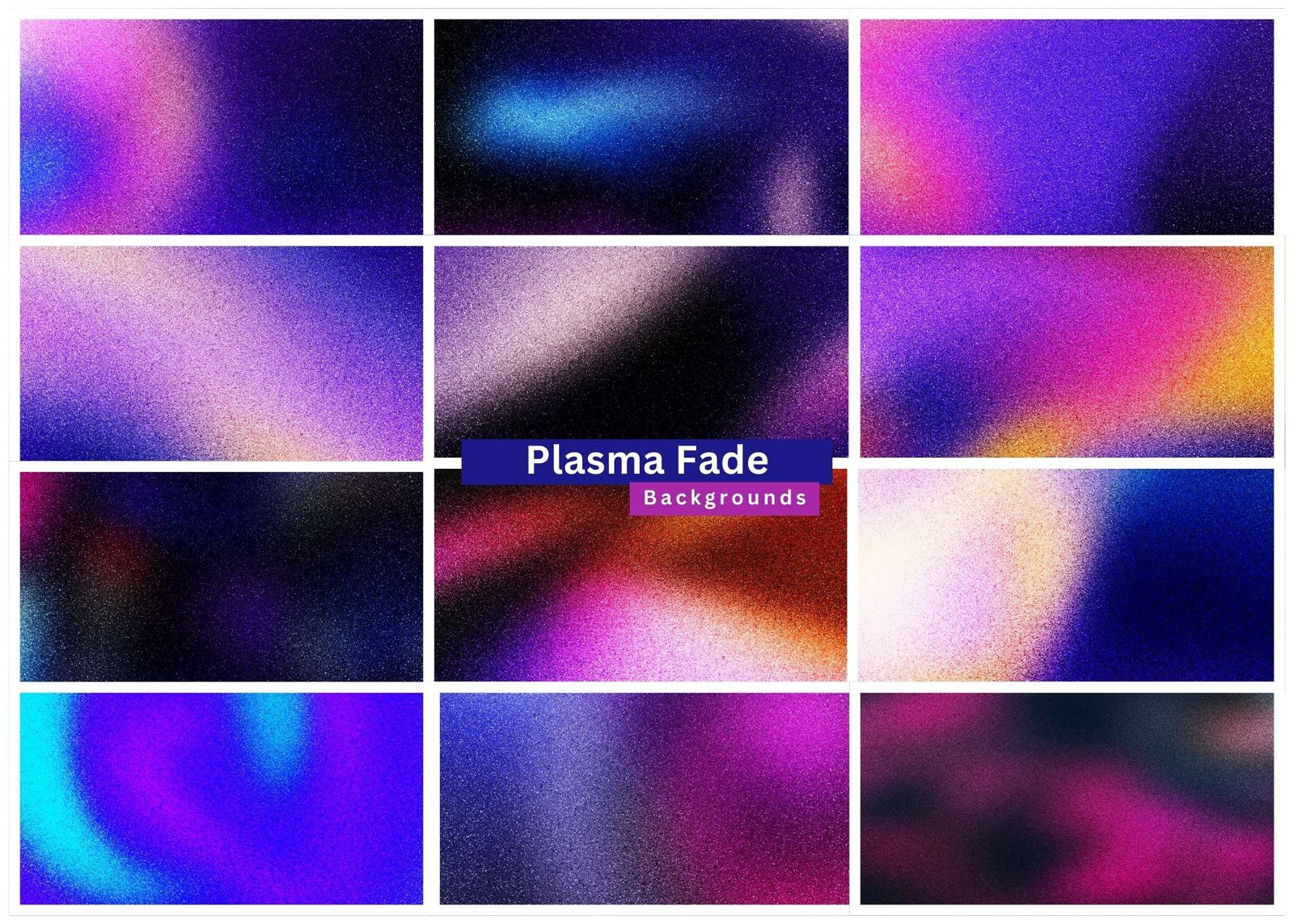 Step into a glowing spectrum of motion with Plasma Fade, a curated collection of 12 abstract gradient backgrounds infused with vibrant color transitions, soft blur flows, and refined grain textures. Each composition feels alive, where luminous purples, electric blues, warm magentas, and radiant highlights melt into one another in smooth, atmospheric fades.