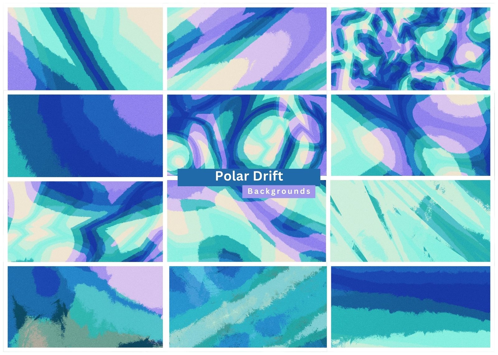 Immerse yourself in the cool motion of Polar Drift, a curated collection of 12 abstract backgrounds inspired by polar currents, drifting ice, and layered atmospheric movement. Each design blends flowing bands, soft directional strokes, and textured gradients, combining icy blue, teal, aqua, lavender, and deep arctic tones to create visuals that feel energetic, crisp, and naturally fluid.