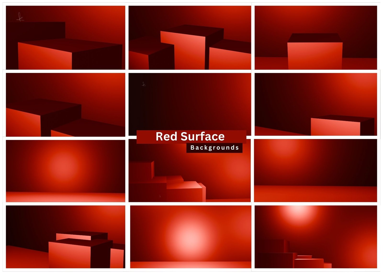 Immerse yourself in the bold intensity of Red Surface, a curated collection of 12 abstract backgrounds inspired by architectural forms, solid geometry, and dramatic light. Each design explores strong planes, cubic structures, and smooth surfaces bathed in deep red, scarlet, and crimson tones, creating visuals that feel powerful, modern, and strikingly minimal.