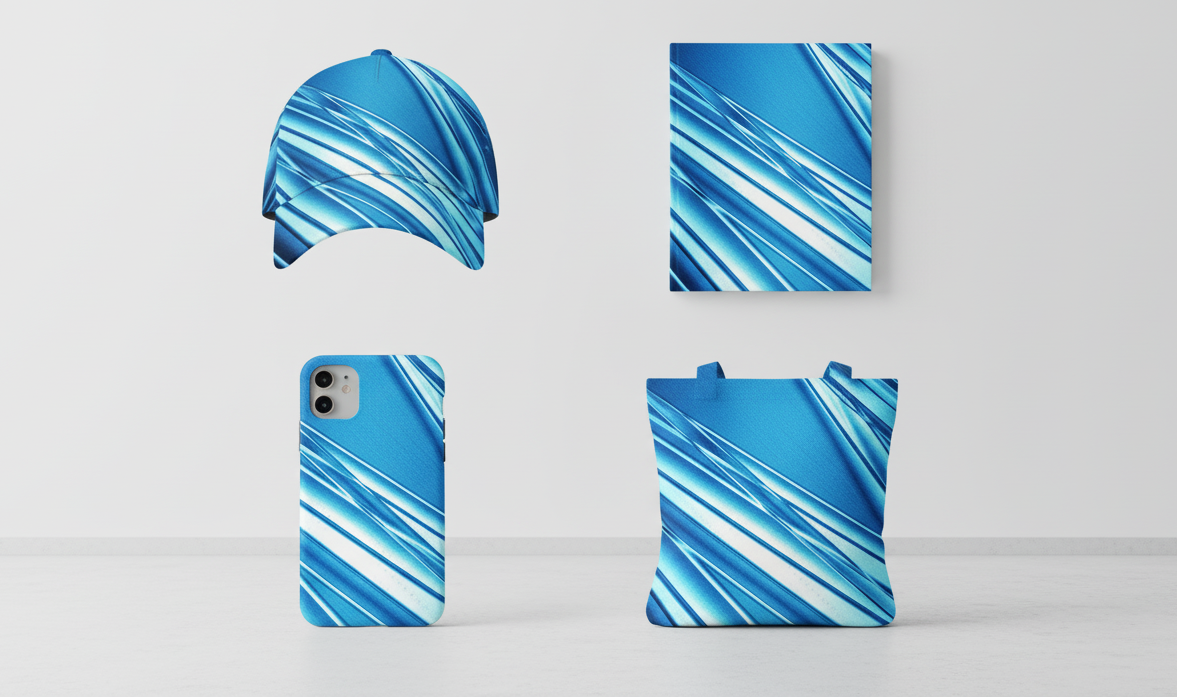• Physical products for sale (fashion, prints, packaging, etc.)