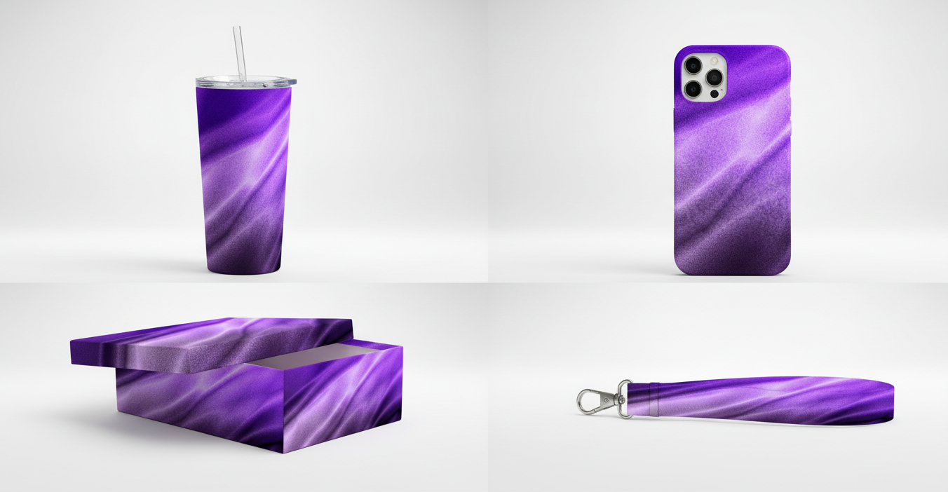 • Physical products for sale (prints, apparel, packaging, home décor, etc.)